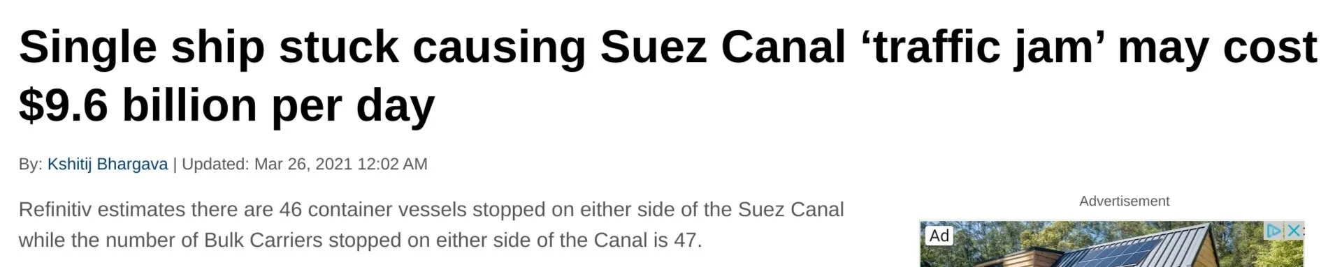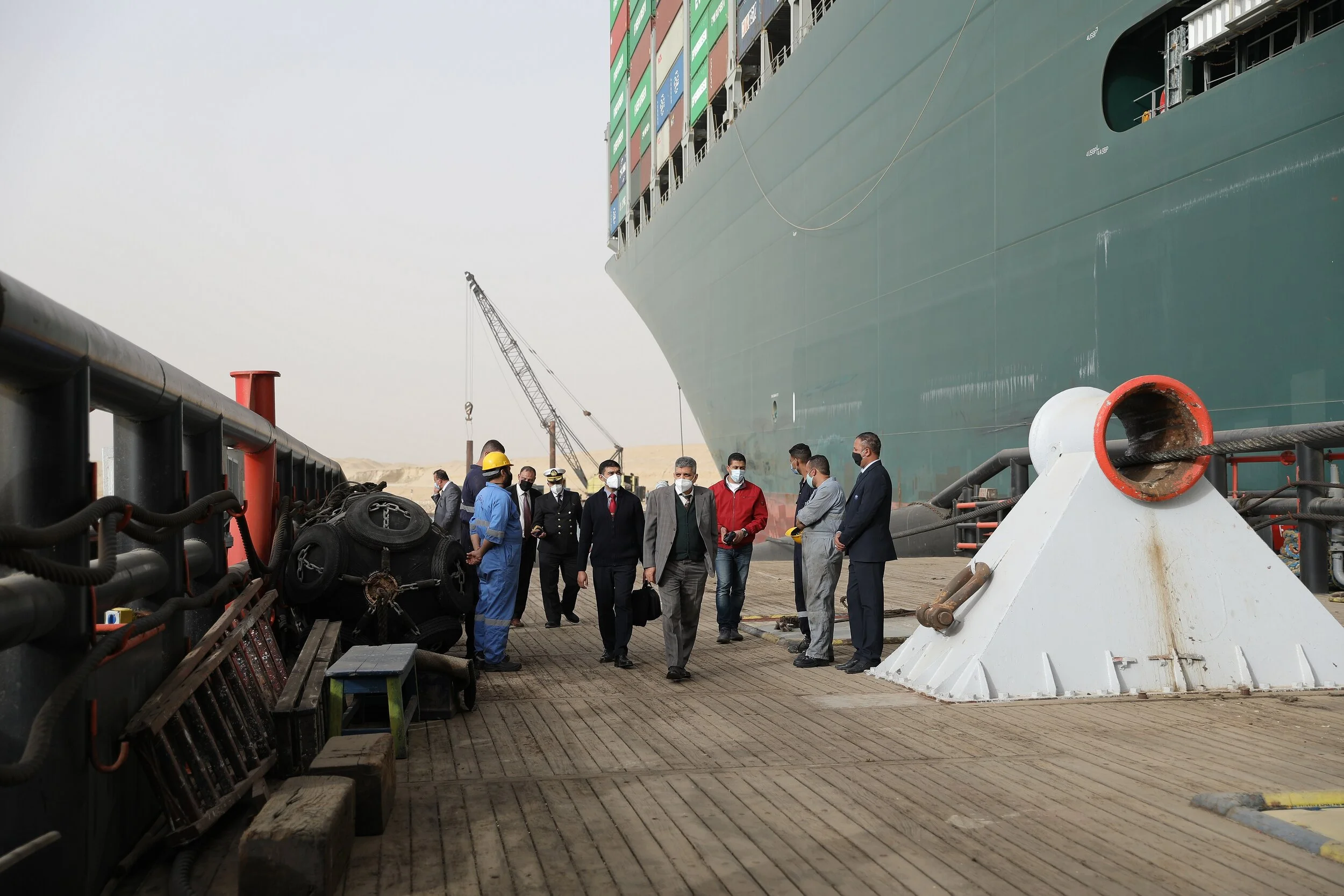 Waiting for the canal to be cleared for safe passage.