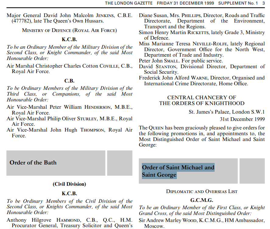 She knighted him on December 31st, 1999, before his assignment in Moscow the next day.