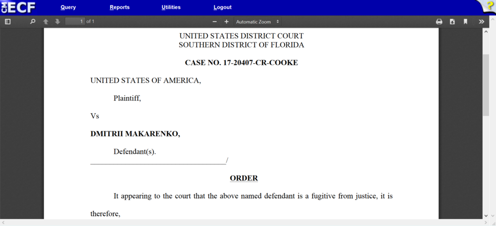 Makarenko fled Miami to avoid two sentence hearings in U.S. District Court in Miami. The court ruled him to be a fugitive and closed his case. Dmitry is jailed in a Federal Detention Center in Honolulu, Hawaii, according to the Federal Bureau of Prisons.